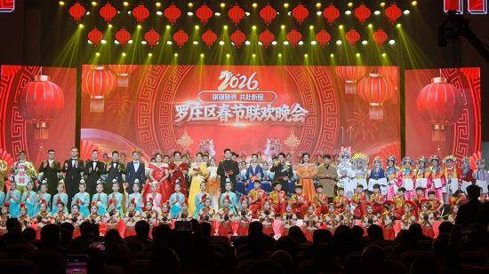 盛世欢歌启新篇,马踏祥云报春来。2月10日晚,罗庄区2026年春节联欢晚会在盛阳集团不锈钢会议中心举行。晚会以“骐骥驰骋 共赴新程”为主题,通过四大篇章、17个精品节目的艺术呈现,全景式展现罗庄区高质量发展的辉煌成就,凝聚起全区人民昂扬奋进的磅礴力量。王鑫、张强、彭有聚、夏洪成、刘克区、李婷等区级班子领导与优秀党员代表、身边好人等社会各界人士欢聚一堂,共迎新春佳节。
