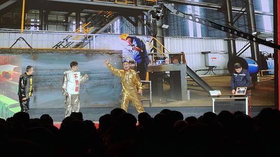第二篇章《百花争艳千帆竞》聚焦产业创新与奋斗精神。山东盛阳集团选送的小品《复合板的诞生》,取材真实研发故事,生动演绎了企业攻坚克难的创新精神;歌曲《劳动的荣光》由徐建星等四位歌手联袂唱响,用激昂的旋律致敬每一位平凡而伟大的奋斗者;配乐朗诵《大爱长歌》由马璇等四人深情演绎,展现了志愿服务群体的温暖力量;“星光大道”周冠军张海军一曲《我把故乡比苏杭》,用悠扬的沂蒙民歌赞颂生态治理的显著成果。